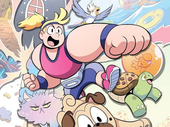 I got to read an advanced copy, and I’m happy to say it’s a blast — a perfect distillation of Caleb’s style (as seen as far back as his incredible Power Rangers riff with artist Buster Moody, Task Force Rad Squad) with kids’ comics, wrapped up in a high concept that’s basically “What if Polly Pocket and Mighty Max had a kid?” I accidentally started the interview by saying that (mild spoiler) I thought it was great to see a kids’ comic where the parents are fairly crappy people.